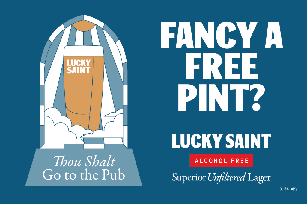 Go to luckysaint.co to claim your free pint of Lucky Saint draught, redeemable at The Coat & Bear in Newbury.