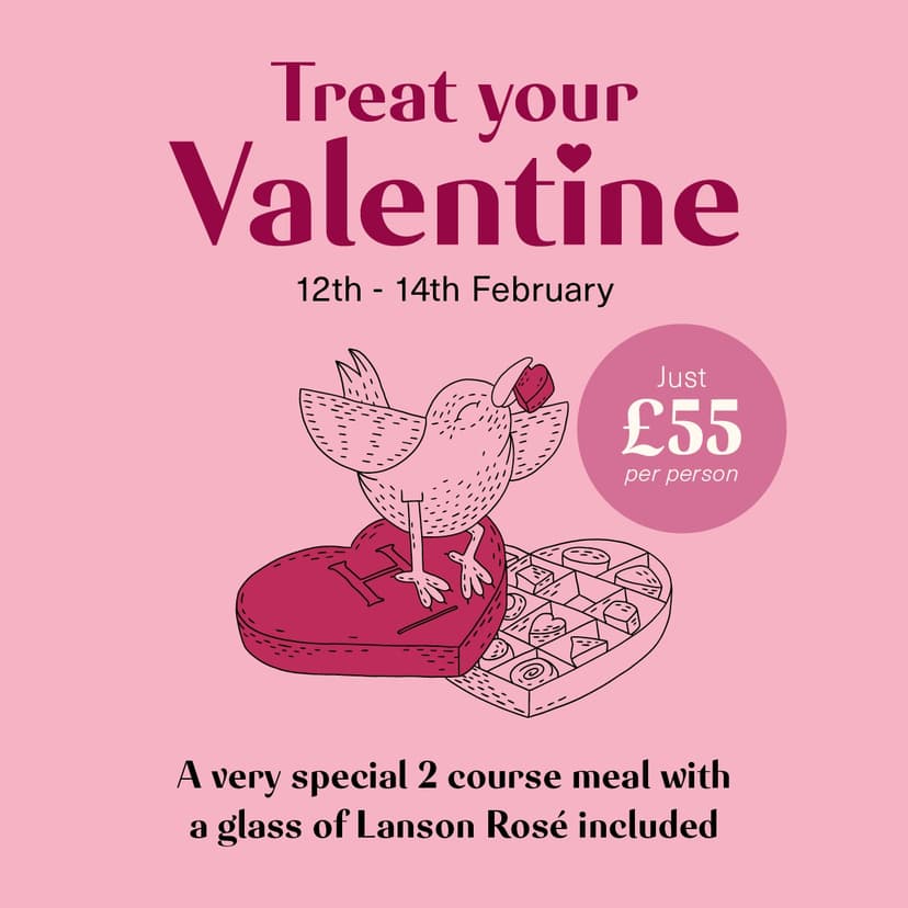 Celebrate Valentine’s at The Coat & Bear with our indulgent 2 course set menu, featuring beautifully crafted dishes and a glass of Lanson Rosé for just £55 per person.