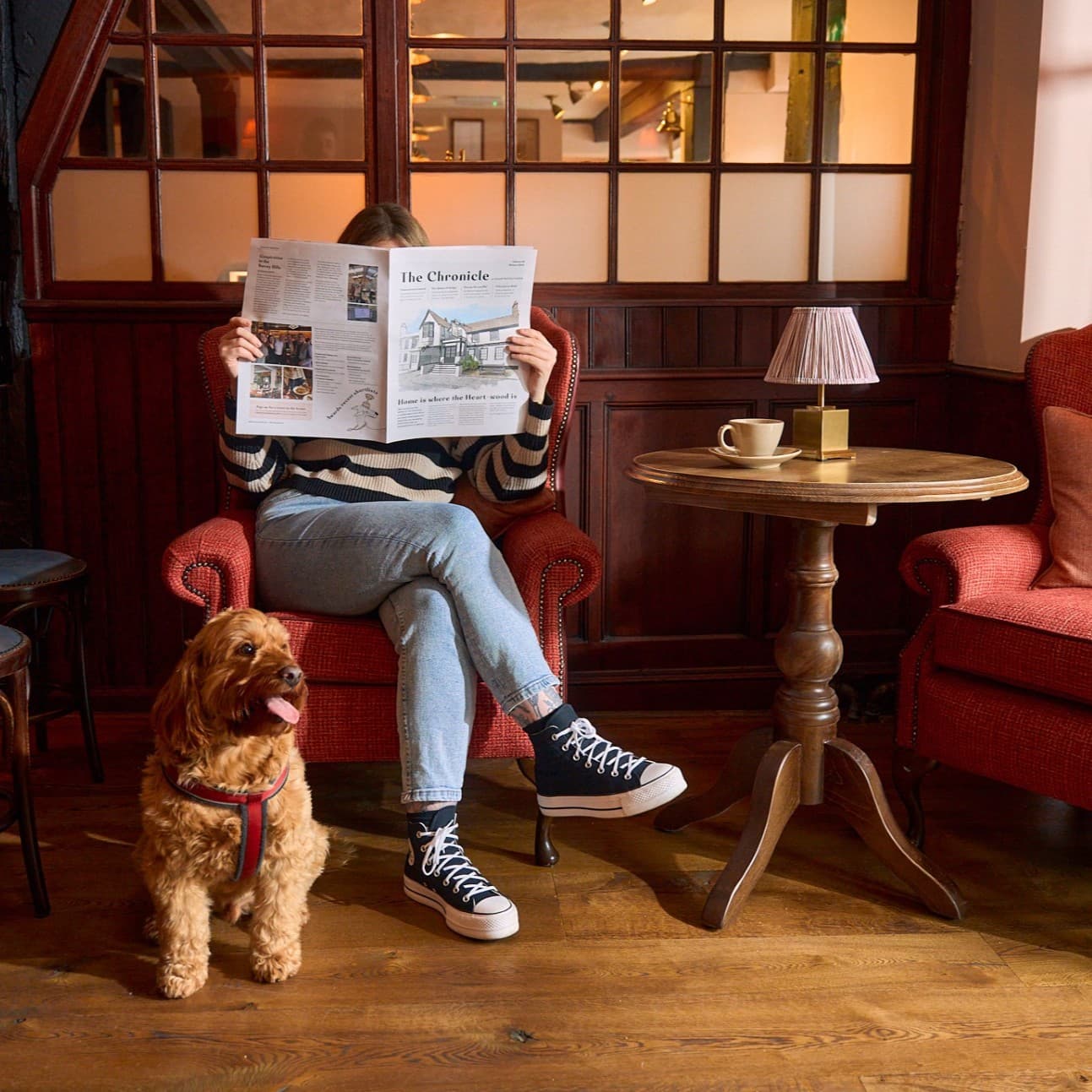 Dogs are welcome throughout many parts of our pub. Whether you’re popping in for a pint or enjoying a long, lazy lunch, you’ll find dog friendly spaces in The Coat & Bear where your pooch can settle in comfortably by your side.